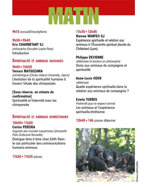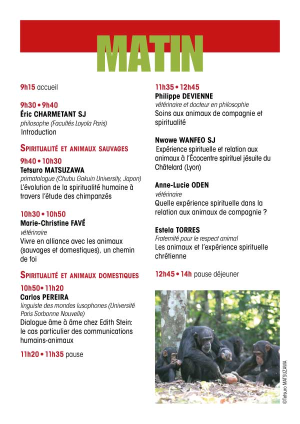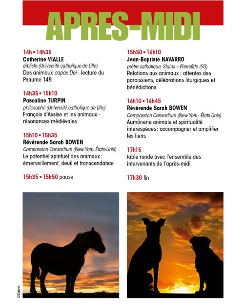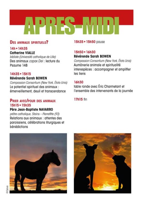 Une sixième journée est consacrée au thème : Animaux et spiritualité chrétienne