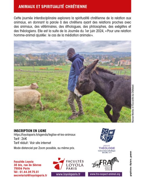 Cette journée interdisciplinaire explorera la spiritualité chrétienne de la relation aux animaux, en donnant la parole à des chrétiens ayant des relations proches avec des animaux, des vétérinaires, des éthologues, des philosophes, des exégètes et des théologiens. Elle est la suite de la Journée du 1er juin 2024, « Pour une relation homme-animal ajustée : le cas de la médiation animale ».