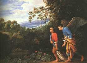 Le héros du récit, le jeune Tobias part pour un long voyage, accompagné par l’ange Raphaël et par son chien : « Le garçon partit, et l’ange avec lui ; le chien aussi partit avec lui et les accompagna » (Tb VI, 1). Le père de Tobias, Tobie, un juif pieux et fidèle, déporté à Ninive, envoie son fils récupérer une somme d’argent qui lui revient. Etant aveugle, il ne peut accompagner son propre fils et l’envoie sans le savoir avec l’ange Raphaël qui connaît le chemin. Mais les deux ne partent pas seul, car un chien fidèle les suivra du début (Tb VI,1) à la fin du voyage (Tb XI, 4c). On laisse imaginer au lecteur la joie du père qui retrouve le chien de son fils, retourné en premier pour annoncer l’arrivée de Tobie et de Raphaël. Le chien est signe du retour du fils bien-aimé. Il anticipe les retrouvailles entre le père et le fils, devenant ainsi facteur de joie, une joie probablement indescriptible [2].