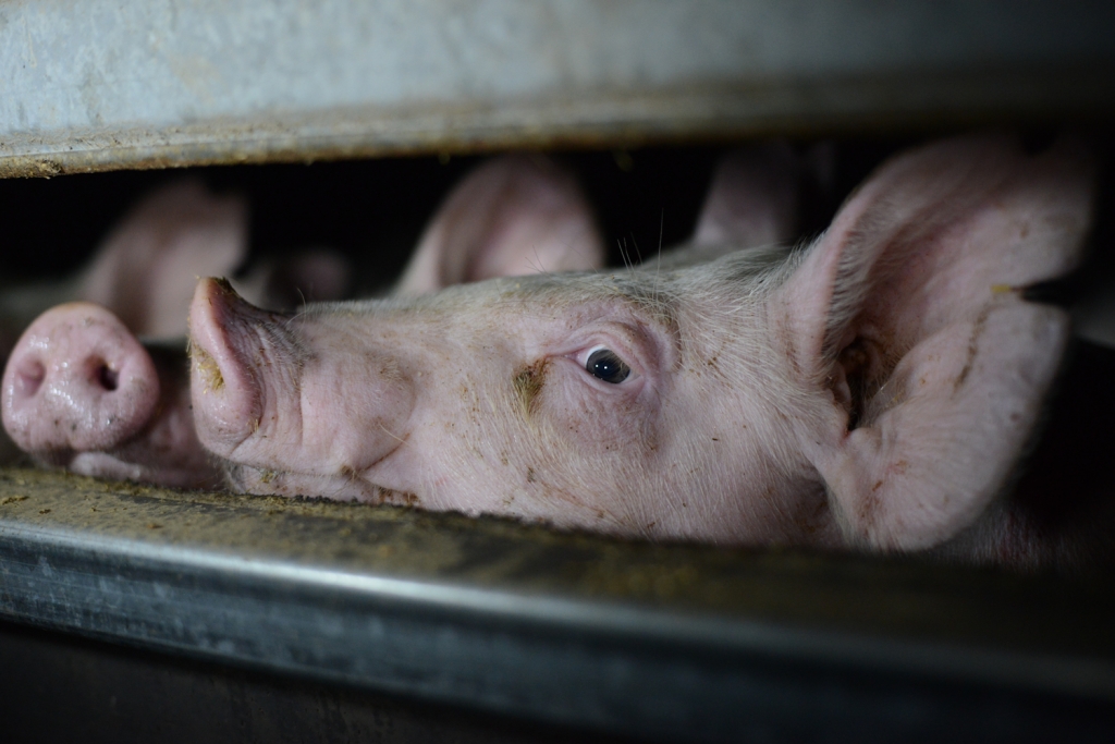 Hyper-bred in industrial facilities, separated at once from their mothers, denied the outdoors and anything resembling a natural life, confined without relief between bars, mutilated, experiencing no touch of human kindness before it all ends in the mayhem of slaughter, these creatures still have the social natures of their own distant wild ancestors. Each one still has the emotions, the desires, the need for play, companionship, and maternal care that allowed their kind to flourish over millions of years before humans took charge of their existence. Each one can be happy, sad, lonely, and afraid. A detail has always stayed with me, from a visit years ago to the world’s largest abattoir for hogs, that somehow stirs fellow-feeling as much as any other: The vast plant floors — scene of 2,000 kills every hour, if you can picture that pace — must be constantly washed clean of waste, because in terror so many of the pigs lose control of their bowels.